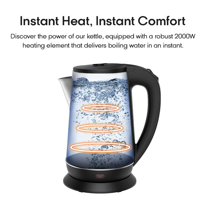 Apart from making tea and coffee, the need of hot water in the kitchen is endless, which makes this electric water kettle a must-have in every home. The handle is made of rubber so you can comfortably hold it even when the body is hot. Using an electric kettle is a very efficient way to boil water. It has seamless tank with rated voltage of 220-240volts.2000w