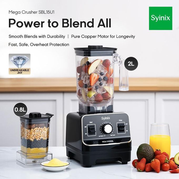 Elevate your kitchen to a new level of sophistication with the 2in1 Syinix Mega Crusher Power Blender-1500w. This premium appliance combines crushing power with precision blending capabilities, making it the perfect tool for creating gourmet meals and drinks. Experience the luxury of effortless blending with this state-of-the-art blender.