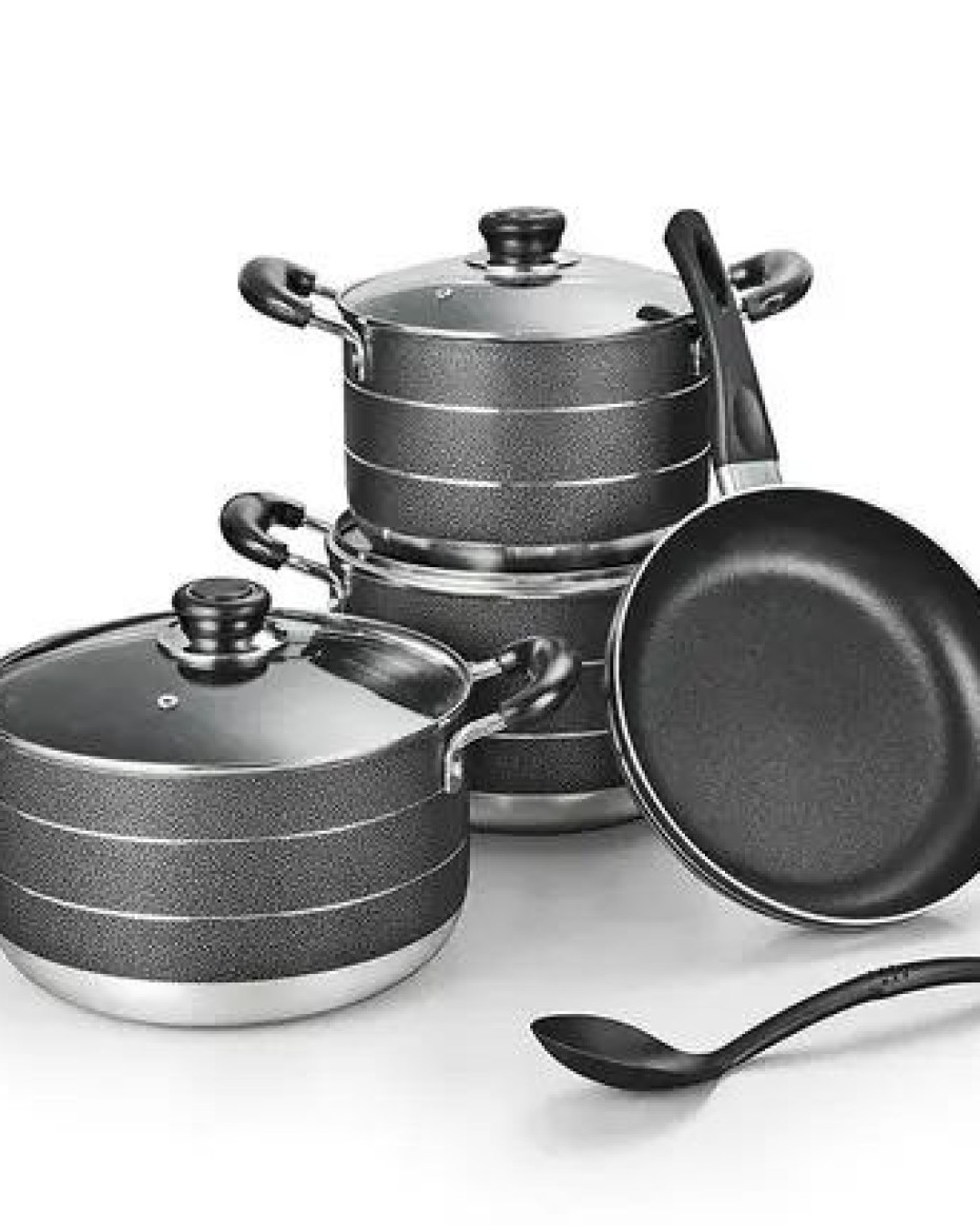 Cook with Confidence using our Non-stick Pot Set & Frying Pan: Transform your kitchen into a culinary haven with our reliable pot set and frying pan, equipped with a non-stick surface for stress-free cooking. Prepare your favorite dishes with ease and enjoy the convenience of easy cleanup after every meal. Looking for cookware that won’t leave you scrubbing for hours? Introducing our Non-stick Pot Set & Frying Pan – the ultimate duo for easy cooking and even easier cleanup. Say goodbye to stuck-on food and hello to effortless dishes.