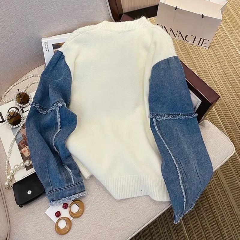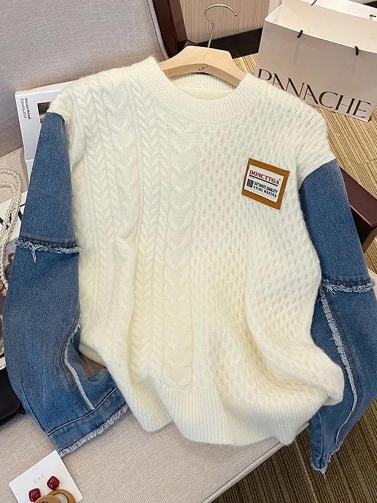 Our Casual Denim Patchwork Knitted Pullover For Women combines the best of both worlds with its denim and knitted fabric construction. The loose fit is perfect for lounging around the house or running errands in style. Plus, the patchwork design adds a trendy element to any outfit. Treat yourself to this versatile pullover and elevate your wardrobe game.