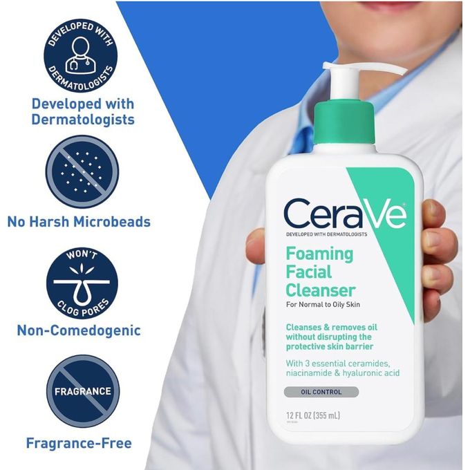 Cera Ve Foaming Face Wash, Daily Face Cleanser for Normal to Oily Skin has a unique formula with three essential ceramides that cleanses and removes oil without disrupting the protective skin barrier. Gentle foaming action refreshes and cleanses skin, including removing excess oils. Suitable for use on the face, body, even hands. Unique formula with three essential ceramides (1, 3, 6-II) that cleanses and removes oil without disrupting the skincare barrier or leaving the skin feeling stripped of moisture.