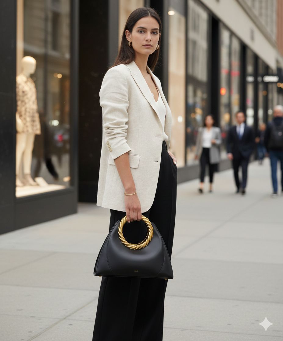 Elevate your style with our Classy Black Leather Handbag, a timeless accessory that effortlessly combines sophistication and functionality. Crafted from premium black leather, this handbag exudes luxury while ensuring durability for everyday use. The sleek silhouette is complemented by a striking gold ring detail, adding a touch of elegance that makes it perfect for both casual outings and formal events. Whether you’re heading to the office or enjoying a night out, this handbag is designed to make a statement.