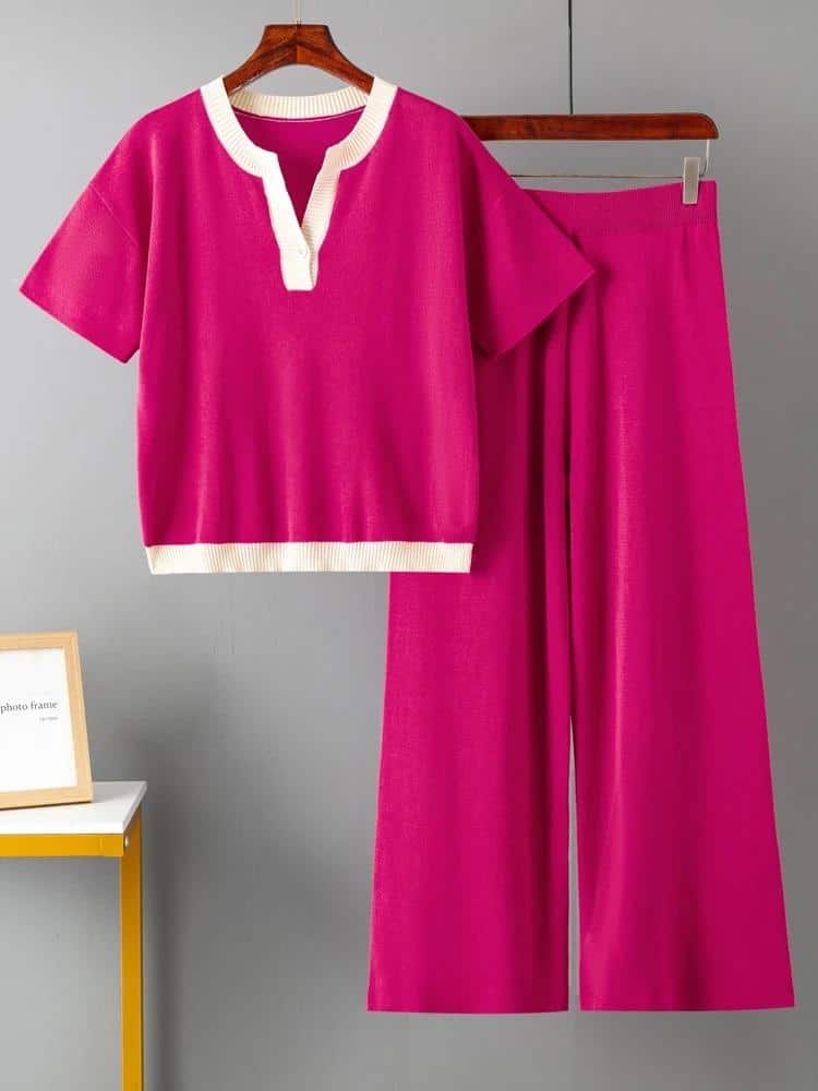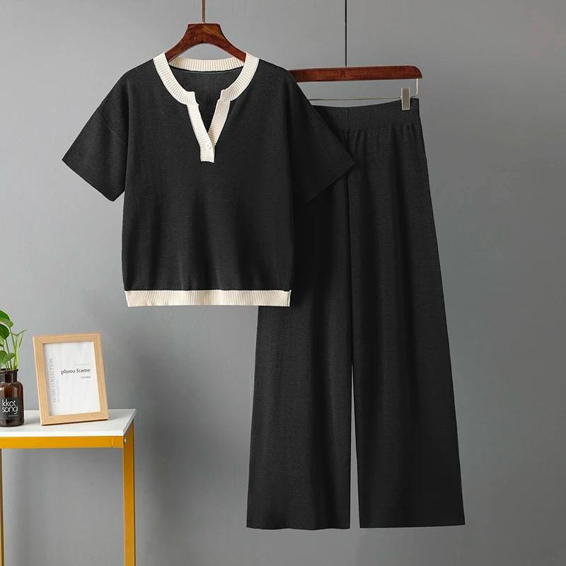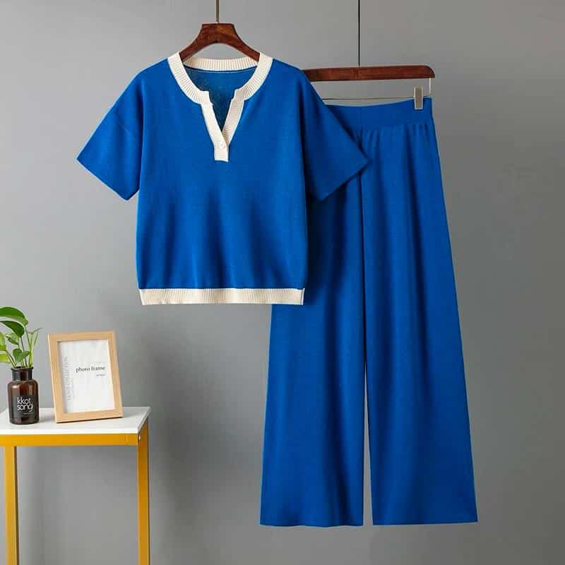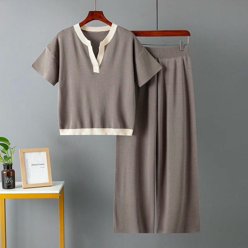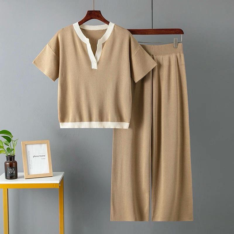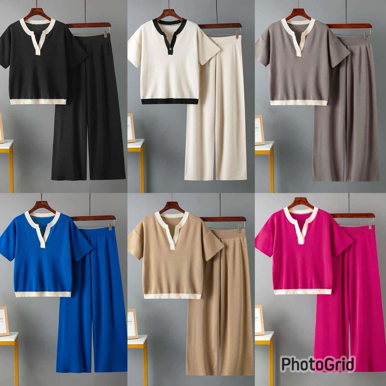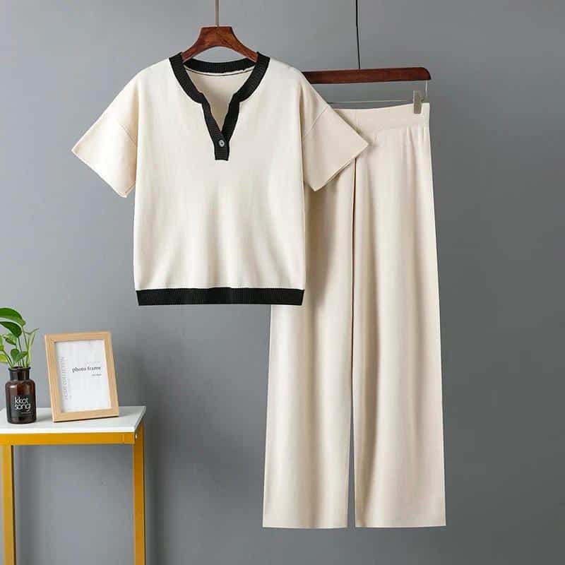 Be the first to review “Classy Knitted Short Sleeve Top & High Waist Wide Leg Pants”