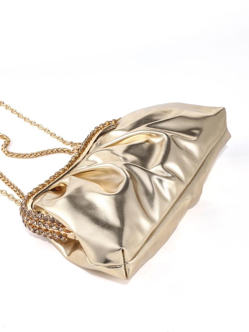 Designed for both functionality and flair, the Clutch Bag features a sleek silhouette that easily fits your essentials while making a bold statement. The sleek design features a secure clasp closure to keep your essentials safe while the spacious interior provides ample room for your phone, makeup, and other must-haves. With its radiant gold finish, this Clutch Bag adds a touch of opulence to your look, making it the perfect companion for those who love to shine.