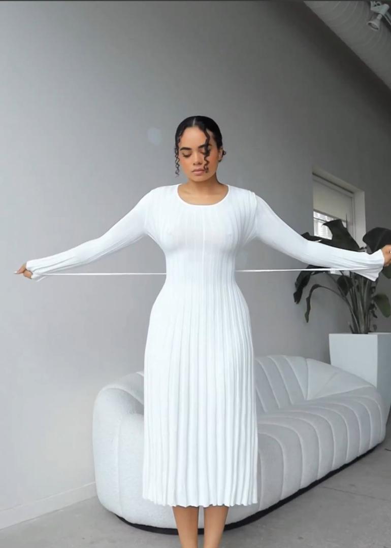 Step out in style with our Elegant Knitted Long Sleeve Tie Back Flare Dress. This versatile piece is a must-have in every fashionista’s wardrobe. The knitted fabric is soft and stretchy, ensuring a comfortable fit all day long. The tie back detail adds a trendy twist, while the flare silhouette creates a feminine and chic look. Dress it up with accessories for a polished ensemble or keep it casual with sneakers for a laid-back vibe.