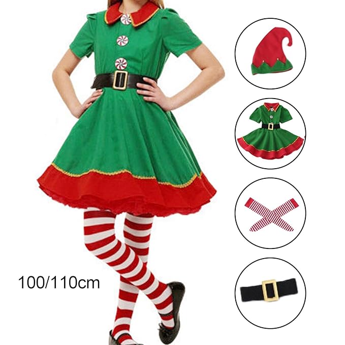 Get ready to spread some holiday cheer with our delightful Elf Costume Dress For Little Girls. Whether she’s dressing up for a school play or just playing make-believe at home, this dress is a must-have for any little girl who loves all things magical. Made with attention to detail and a touch of sparkle, this dress is sure to bring a smile to her face.