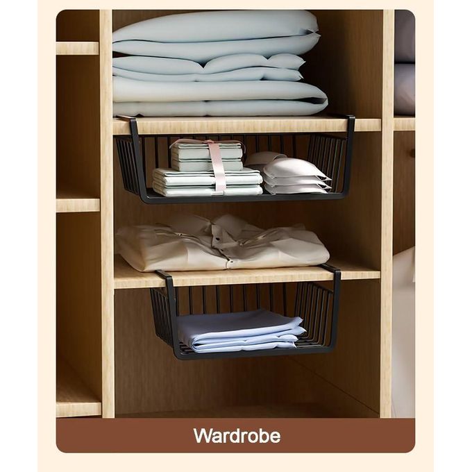 Space-Saving Design: Maximizes unused vertical space under shelves in cabinets, wardrobes, pantries, or desks.