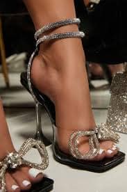 - Step out in style with our Ladies Embellished Bow Strap High Heels. These fashionable heels are designed to add a touch of glamour to any ensemble. The embellished bow strap detail adds a playful and feminine flair, making them a versatile and trendy addition to your wardrobe. Whether you’re dressing up for a formal occasion or just want to add some pizzazz to your everyday look, these Ladies Embellished Bow Strap High Heels are the perfect choice.