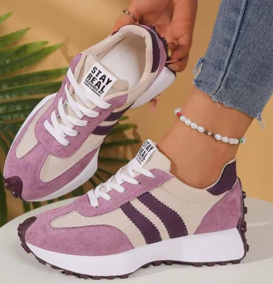 Step into style and comfort with our Ladies Fashion Platform Sneakers, designed to elevate your everyday look. The striking combination of purple and white not only adds a pop of color to your outfit but also ensures you stand out in any crowd. Perfect for casual outings or a day out with friends, these sneakers are a must-have for the fashion-forward woman.