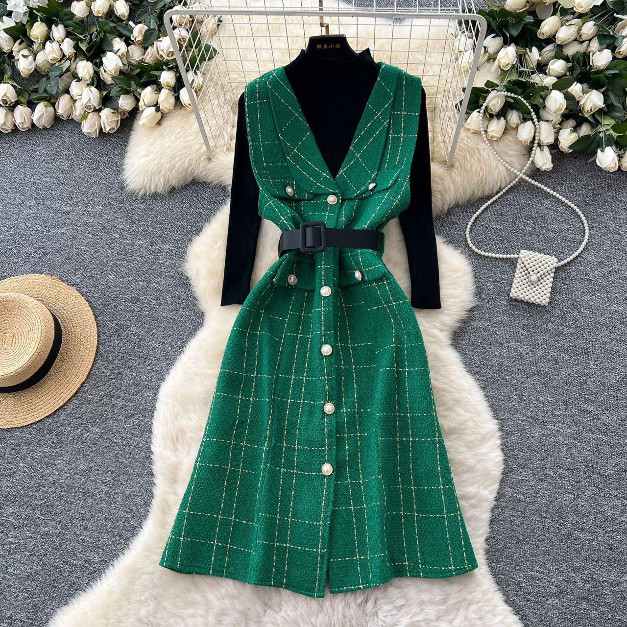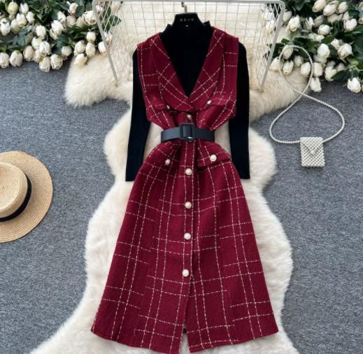 Designed with versatility in mind, this Ladies Fashion Tweed 2-Pcs Set Dress can be easily accessorized to suit any occasion. Pair it with heels for a polished look or dress it down with flats for a more relaxed vibe. The flattering silhouette enhances your figure, while the timeless tweed pattern adds a touch of classic charm to your collection.