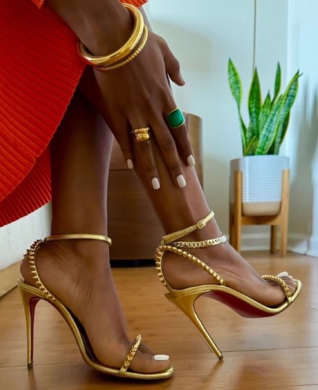 Don’t miss your chance to own a pair of these stunning Ladies Gold Spike Stilettos Sandals. With their unique design and luxurious finish, they are not just shoes; they are a statement. Step up your fashion game and make these classy Ladies Gold Spike Stilettos Sandals a staple in your collection today!