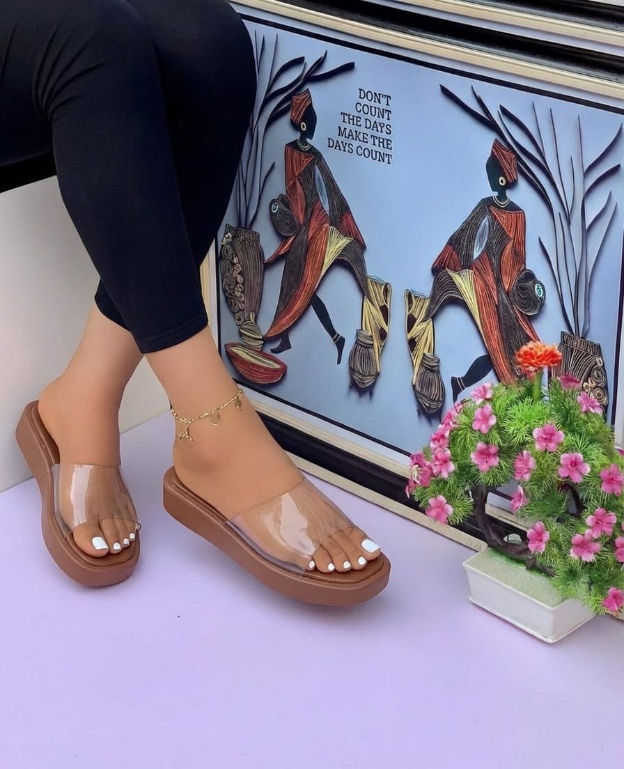 Step into style and comfort with our Ladies Transparent Strap Wedge sandals, the perfect blend of chic and practicality. Designed for the modern woman, these sandals feature a sleek transparent strap that elegantly hugs your foot, providing a secure fit while allowing your skin to breathe. The wedge heel not only adds a touch of sophistication but also offers the perfect elevation for all-day wear, making them ideal for both casual outings and special occasions.