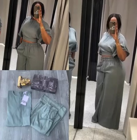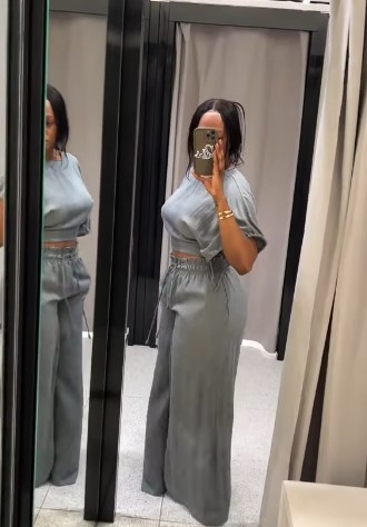 Designed for versatility, this Ladies Two Piece Set allows you to mix and match with your favorite accessories. The flattering silhouette of the wide pants complements the relaxed fit of the top, making it easy to create a polished look without sacrificing comfort. Capture your best moments in style, just like the confident woman in the mirror!
