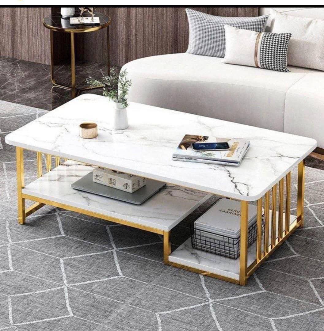 【WIDELY USED】 The size of this Rectangular coffee table is 39.37 x 19.69 x 16.93. It is perfect as a coffee table side table or cocktail table, in your living room, balcony, dining room or garden. The elegant white table top and smooth gold legs make your home more modern.
