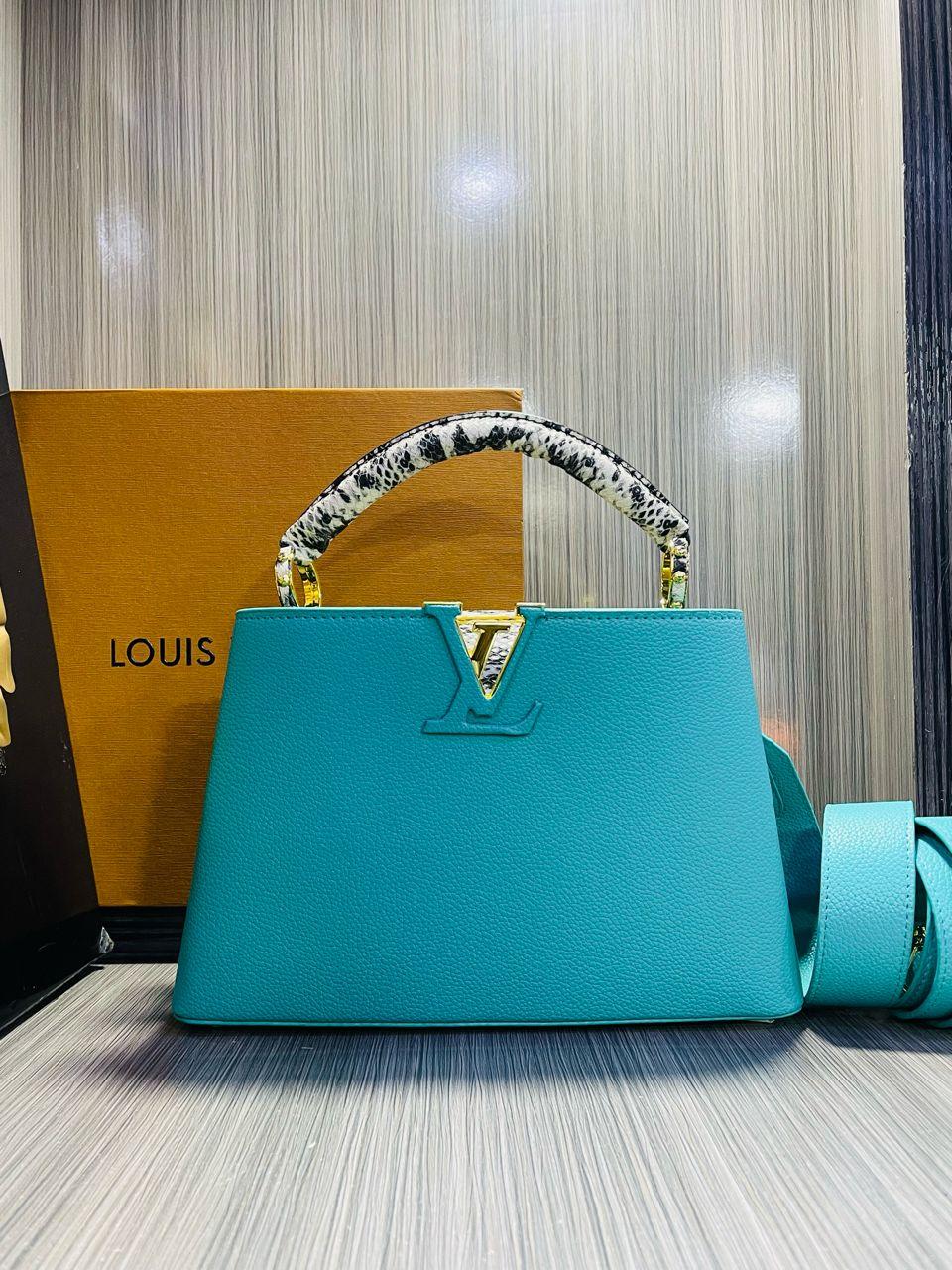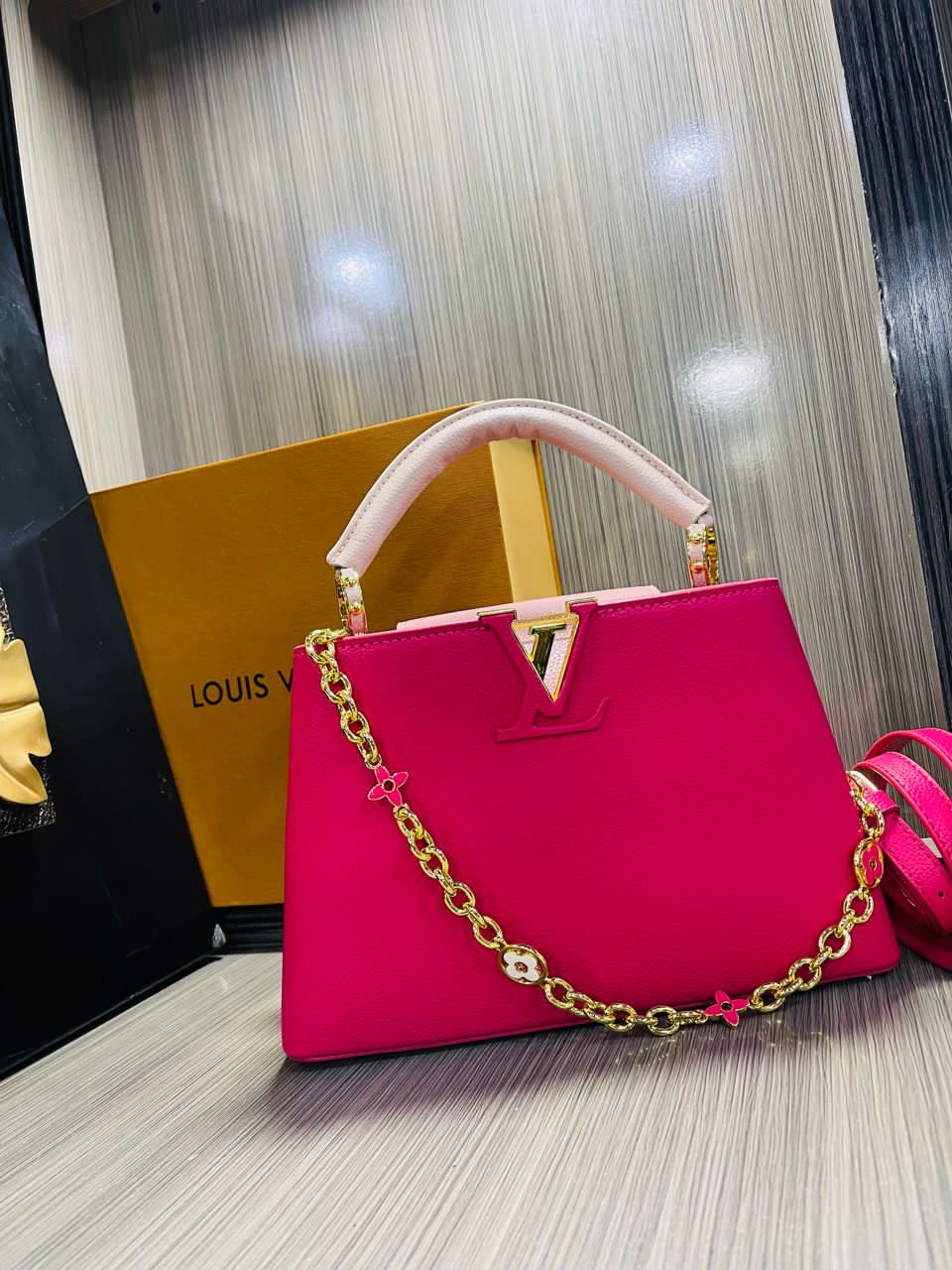 Experience the epitome of opulence with the LV Leather Capucines Hand Bag is a true symbol of impeccable taste and unrivaled quality. Meticulously designed with premium leather, the LV Leather Capucines Hand Bag is a statement piece that radiates elegance and allure. Enhance your everyday ensemble with this exquisite accessory that seamlessly fuses style with practicality.