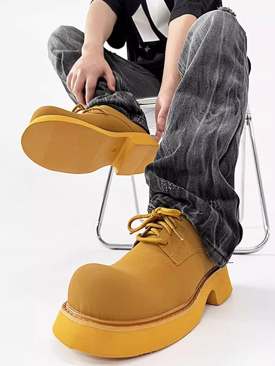 These Derby shoes are designed for the discerning gentleman who values both style and functionality. The rich tan hue adds a touch of warmth to any outfit, making them versatile enough to pair with tailored suits for formal occasions or smart-casual ensembles for a night out. The chunky sole not only offers a bold statement but also features superior grip, allowing you to navigate various terrains with confidence.