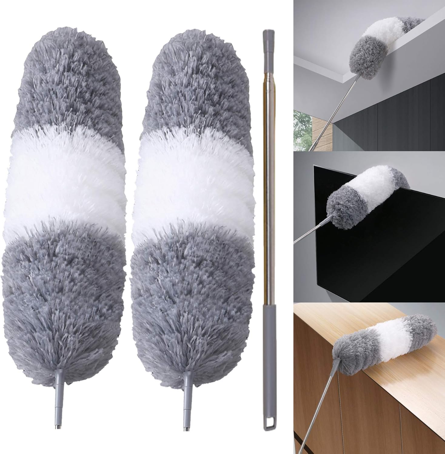 EXTENDABLE: Our microfiber duster comes with stainless steel telescoping extension pole which can extend 30 to 96.5 inches.
