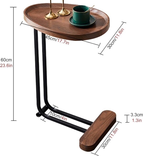 【Product Dimensions】 This side table has a large table top measuring 30cm/11.8″ long x 45cm/17.7″ wide and a reasonable height of 60cm/23.6inch.