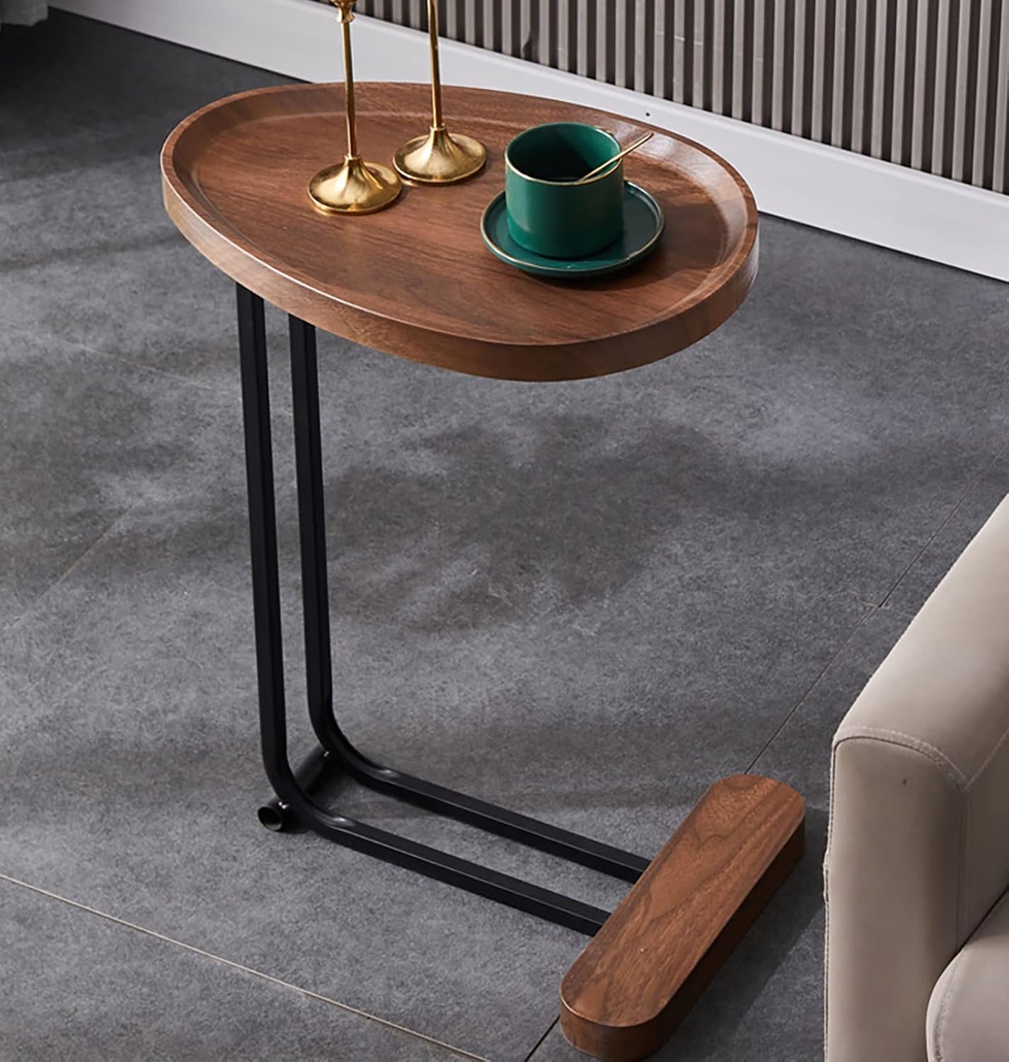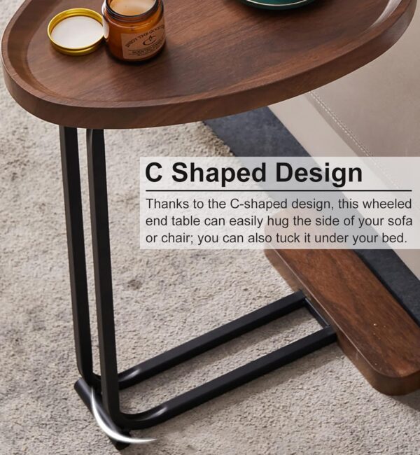 【C-Shaped Design】 Thanks to the C-shaped design, this compact side table can easily enclose the side of your sofa or chair; you can also tuck it under your bed. It makes your snacks, coffee, remote controls, phones, books easier to reach.