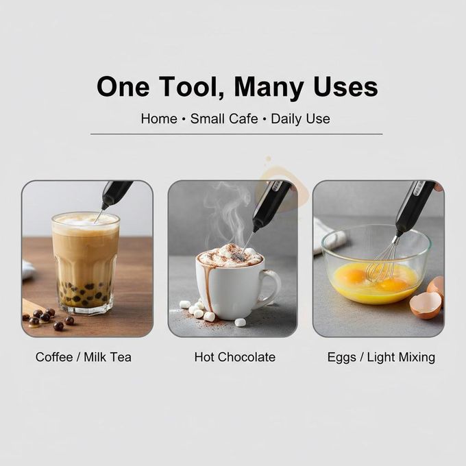 Elevate your morning routine with our Handheld Mixer, designed to effortlessly blend cappuccinos, matcha lattes, hot chocolates, scrambled eggs, and milkshakes to perfection. Whether you’re a coffee lover, tea enthusiast, or cooking aficionado, this compact and convenient tool will revolutionize the way you prepare your favorite beverages and dishes.