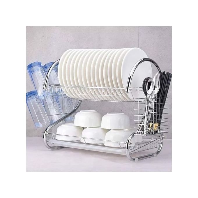 This Dish Rack is a handy kitchen accessory which should be found in every home for it lets you neatly arrange your plates, spoons, forks, knives and other utensils. After washing your plates, you can stack them on this dish rack so as to drain the water completely. Double Layer Dish Rack has a compact design so space will not be an issue in your kitchen. It is made from high grade stainless steel which makes it highly durable. It will remain rust free no matter how long you use it. Its lovely design makes it fit perfectly with your kitchen decor.