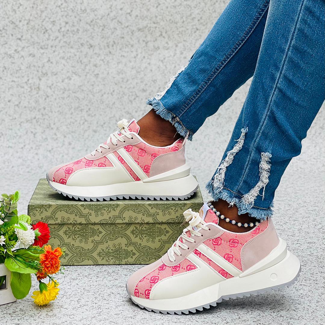 Perfect for adding a sporty-chic vibe to your look, these sneakers are not only stylish but also incredibly comfortable. The thick sole provides extra cushioning and support, making them ideal for long walks or busy days. Take your outfit to the next level with these must-have sneakers.