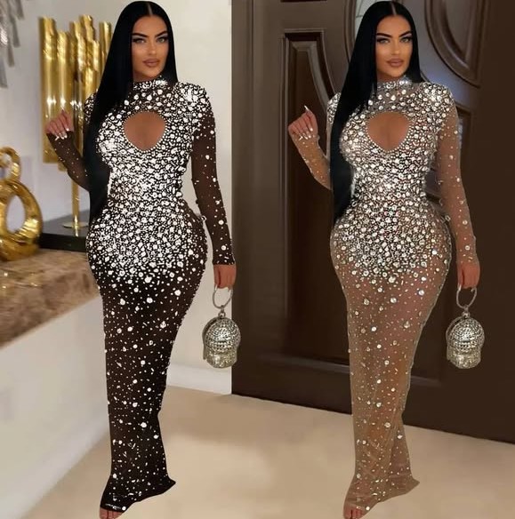 Pair it with your favorite heels and statement accessories for a complete look that radiates confidence and sophistication. Step into the spotlight and let your style shine with the stunning Women Beaded Crystals Long Sleeve Dress—your new favorite outfit awaits!
