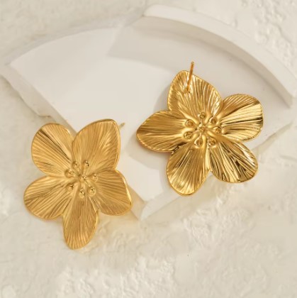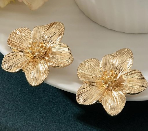 Elevate your style with these captivating Women Gold Flower Earrings. Crafted with a stunning gold tone, these earrings feature a delicate floral design that adds a touch of elegance to any outfit. Whether you’re dressing up for a special occasion or adding a chic finishing touch to your everyday look, these earrings are sure to turn heads.