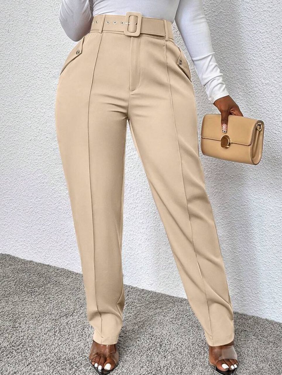 The high-waist design not only elongates your legs but also offers a sophisticated touch, perfect for both casual outings and professional settings. The included belt adds a stylish detail while allowing you to customize your fit for maximum comfort. Pair them with a crisp white top for a polished look that transitions seamlessly from day to night. With a design that can be dressed up or down, these trousers are a must-have for any fashion-forward woman.