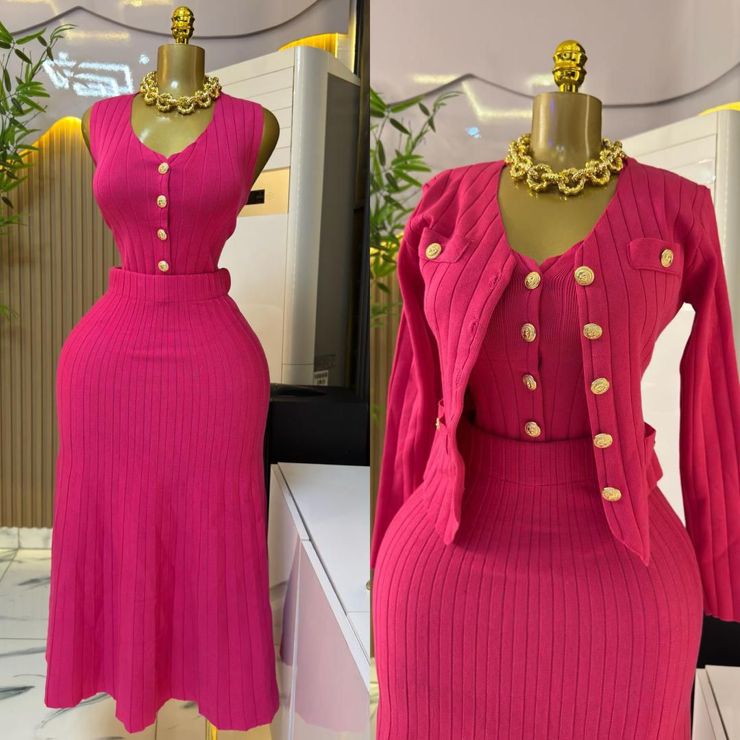 This Women Knitted Three Pcs Set is the perfect addition to your cold-weather wardrobe, offering a chic sweater, trendy vest, and cozy skirt. Don’t miss out on the opportunity to enhance your fashion game. Treat yourself to the Women Knitted Three Pcs Set today and experience the combination of elegance and ease. Your new favorite outfit awaits!