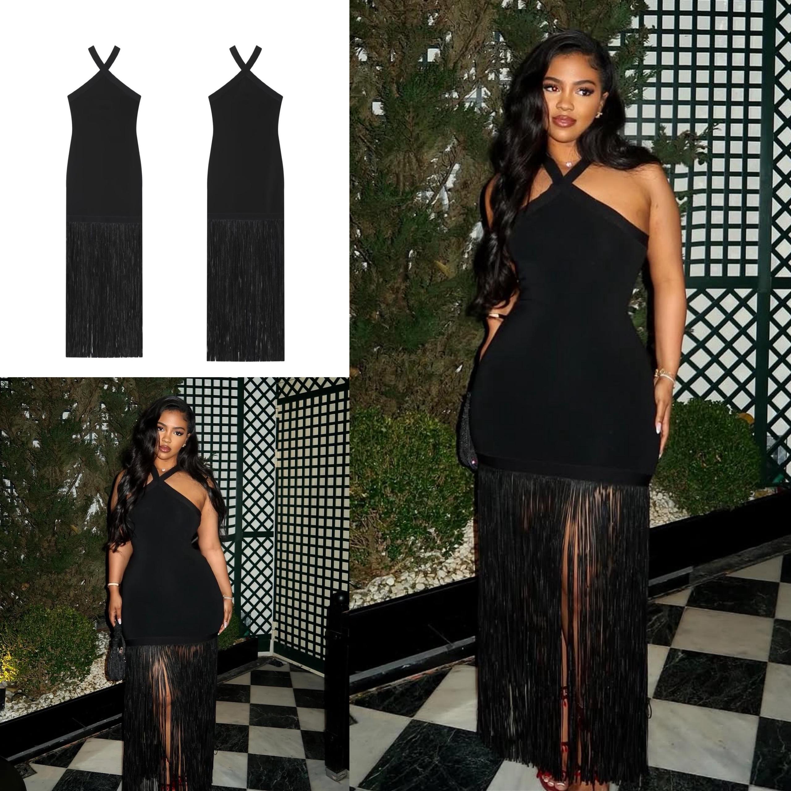Elevate your wardrobe with our Women Stretch Long Fringe Dress, a stunning piece that combines elegance and playful flair. The sleek black fabric hugs your curves while the eye-catching fringe detail adds movement and excitement, making it perfect for any occasion, from cocktail parties to night outs.