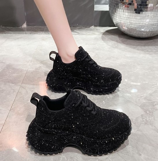 Pair them with your favorite jeans, a casual dress, or even athleisure wear for a trendy look that’s effortlessly stylish. Don’t miss out on the chance to add a little glam to your step—grab your pair of Women’s Black Chunky Platform Sneakers today and shine with every stride!