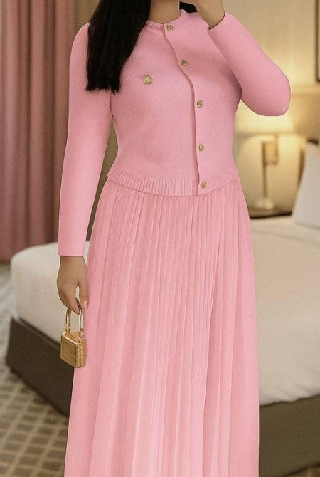 Available in stunning shades of pink and blue, this stunning Women’s Long Sleeve Sweater And Pleated Skirt Set allows you to express your unique style effortlessly. The soft, breathable fabric ensures all-day comfort, while the flattering silhouette enhances your figure, making you feel confident and beautiful. Pair it with your favorite accessories for a complete look that turns heads.