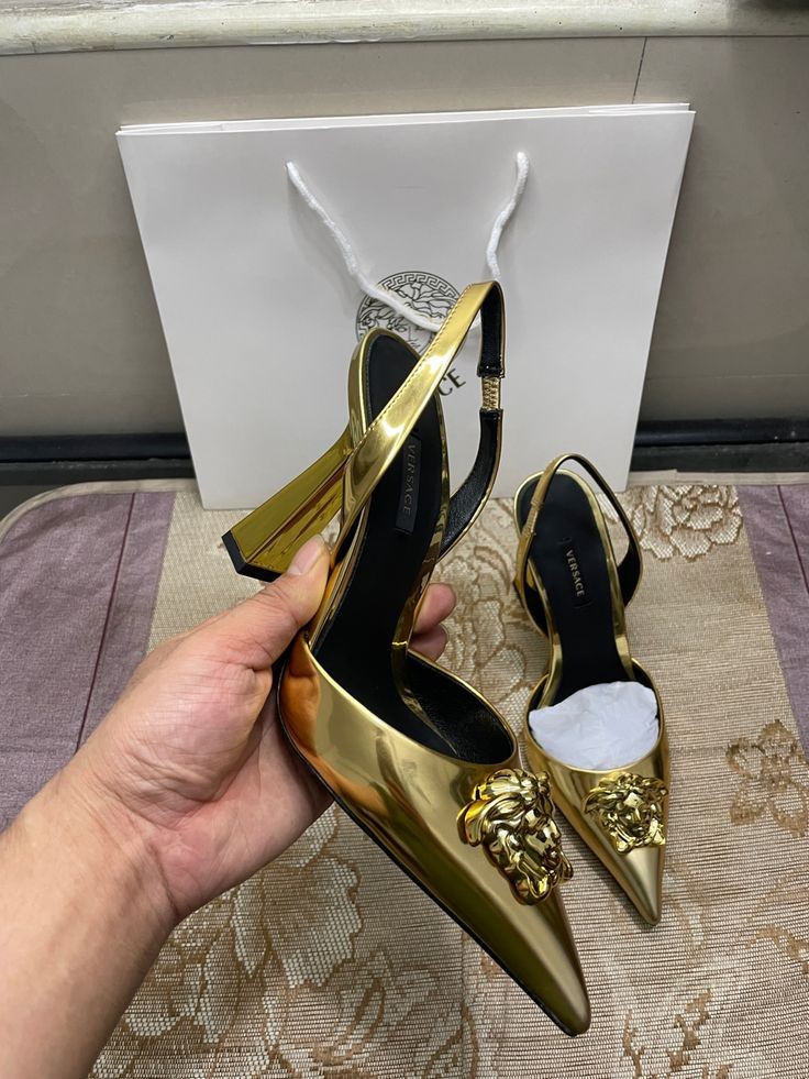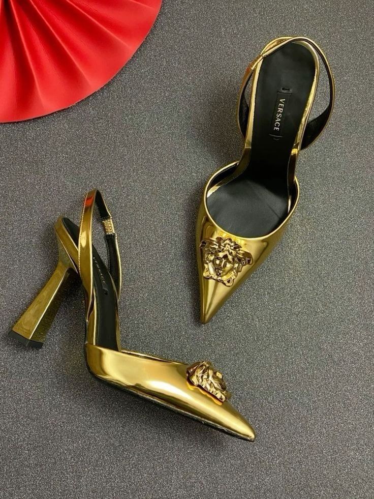 Versatile and chic, our Women’s Metallic Gold Slingback Pumps can be paired with a variety of outfits, from cocktail dresses to tailored trousers. Whether you’re attending a wedding, heading to the office, or enjoying a night out with friends, these pumps will effortlessly elevate your style.