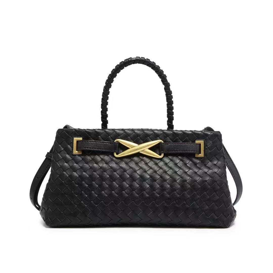 Elevate your accessory game with our Women’s Woven Tote Bag, a blend of style and functionality. Crafted from high-quality materials, this black woven bag features gold hardware that adds a touch of elegance to any outfit. The standout gold buckle not only enhances its chic design but also ensures secure closure for your essentials.