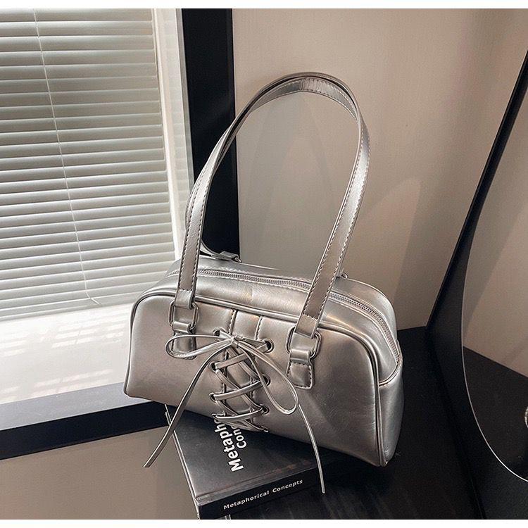 Designed with both style and functionality in mind, this handbag boasts a spacious interior that can easily accommodate your essentials, from your phone and wallet to makeup and keys. The thoughtfully designed compartments ensure that you can stay organized on the go, while the sturdy yet stylish handles provide comfort and ease of carrying. The unique Y2K style handbag inspired details, such as bold hardware and playful accents, make this handbag a standout piece that will turn heads wherever you go.